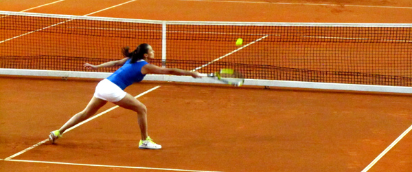 Il sabato si chiude in pareggio e i sonni dei tennisti italiani non sono tranquilli! In conferenza stampa capitan Barazzutti si dice fiducioso sul recupero di Roberta ma tra i tifosi il timore che non possa scendere in campo l’indomani è comunque abbastanza fondato. Alle 13.30 di domenica il 105 Stadium è un tripudio di bandiere, cartelli, tra cui uno con l’ acronimo SARA “Sara Azzurra Romagnola Agonista” e tutto il calore del pubblico amico del tennis e di Sara (che è di Massa Lombarda, non lontano da Rimini) si fa sentire in ogni modo: dall’applauso, al suono delle trombette, al coro da stadio:” Ti vogliamo co-sì!”. Il primo incontro è proprio tra Sara Errani e Varvara Lepchenko che alle italiane porta un po’ male..aveva già eliminato la Schiavone l’anno scorso agli Open di Francia ed anche domenica ha ragione di Sara, n.7 del mondo, col punteggio di 7-5,6-2. Nulla da dire, la Lepchenko ha messo in campo il meglio di sé. I ritmi sono stati subito molto alti; sul 4 pari del primo set per un attimo abbiamo la speranza che Sara possa farcela, ma la Lepchenko ormai ha preso fiducia e se ne va chiudendo il primo set per 7-5. Nel secondo si porta a 5-1, la partita sembra finita nonostante la reazione della romagnola che pare poter risollevare le nostre sorti. Siamo 5-2 e l’ultima smorzata di Sara va in rete. 6-2 il secondo set, la Lepchenko ha fatto la partita della vita..l’ha fatta oggi, l’ha fatta qui. Due a uno, per loro. Ad ogni colpo-spettacolo della nostra dalla tribuna una signora estrae .. dal cilindro un piccolo striscione con la scritta “super shot” ma non basta: il colpaccio, per ora, non l’abbiamo fatto.