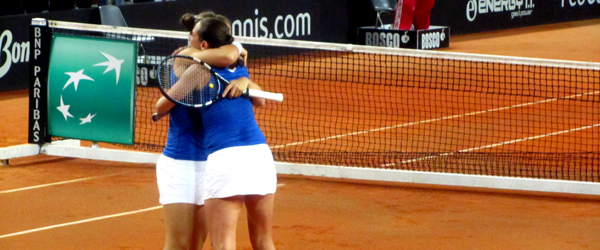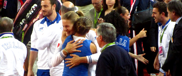 I sospiri di sollievo, la fiducia, la sofferenza sono alcune delle emozioni vissute che hanno accompagnato il week end tennistico riminese per l’incontro di Fed Cup Italia-Stati Uniti e che tuttavia non rendono ragione dell’intensità. La carica dei 5000, accorsi al 105 Stadium, non ha mai smesso di crederci e di sostenere la squadra italiana anche se, per intonare la marcia trionfale, si è dovuto aspettare il doppio decisivo, sul punteggio di due incontri pari, giocato in un silenzio quasi religioso, rotto solo dal fragore degli applausi che hanno sottolineato la bravura e la bellezza del gesto tecnico di Sara Errani e Roberta Vinci, la coppia più bella e più forte del mondo!