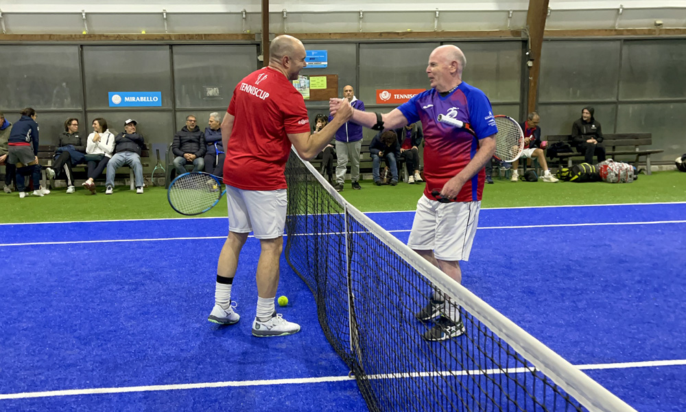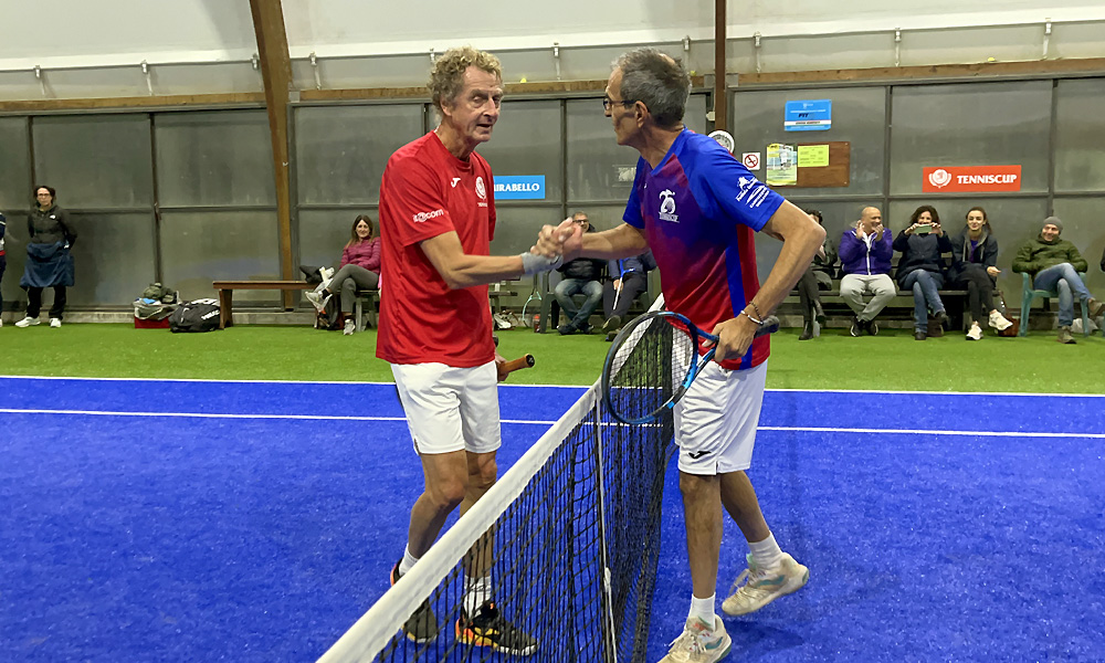 Voti per tutti : MONDINI (voto 9) rientra in campionato dando prova della sua ottima condizione fisica che accompagna anche quella tennistica, non da scampo al suo avversario e se il buongiorno si vede dal mattino, REBECCHI (voto 6,5) gioca al suo solito modo ma questa volta si fa irretire dall’avversario con le variazioni di ritmo senza riuscire mai a prendere l’iniziativa POLDI (voto 8,5) match quasi perfetto dove tiene una grande regolarità nel palleggio sostenendo perfettamente la socia a rete, Erica GELSOMINO (voto 8,5) gioca con una buona continuità e nei pressi della rete è insuperabile, unica pecca i due break subiti ma il match è stato divertente e ben giocato, VITALI (voto 7) trova la decisione e le giocate giuste a metà match ma non basta per riuscire a “prendere” gli avversari, TAVERNA (voto 9) una delle sue migliori prestazioni in tenniscup dove mette in campo varianti e regolarità mai viste prima su questi campi, prestazione al top, SIMONCELLI (voto 5) purtroppo non riesce ad entrare in partita e a portare sul suo terreno il match, l’avversario non gli da il tempo e lui si adagia su ritmi e scambi che non sono suoi senza poter cambiare il canovaccio, Donatella SCAVONE (voto 7) al debutto in tenniscup calca il campo in un match non facile dimostrando le sue indubbie qualità nel palleggio e negli scambi sulle diagonali, non vede mai la rete ma questa è una caratteristica abbastanza tipica del settore femminile, un buon match giocato senza tirarsi indietro.