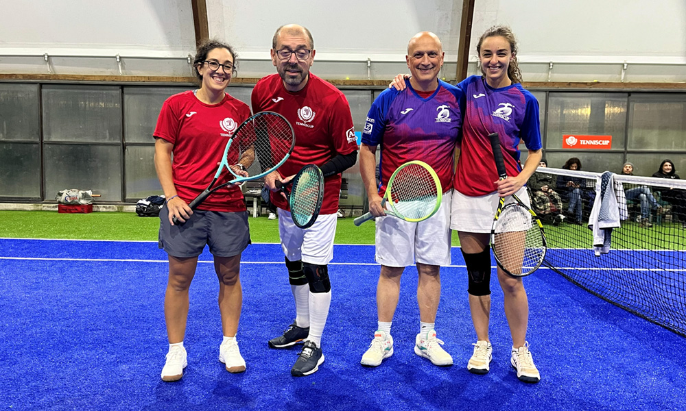 Doppio finale divertente e tutto da vedere con il ritorno in Campionato per Erica Gelsomino e debutto in Tenniscup per Donatella Scavone, ottima partenza per Poldi e Gelsomino che si portano 2-0, il break è sempre dietro l’angolo e Vitali e Scavone cercano di rimanere in scia degli avversari, Gelsomino è più pronta a rete mentre Poldi macina palleggi senza tentennamenti e la coppia va sul 4-2 in suo favore, ancora un break su Gelsomino frutto del lavoro a rete di Paolo Vitali e della vervè da fondocampo di Donatella Scavone, sul 4-3 manca lo sprint finale che trovano i più pronti Poldi e Gelsomino che senza tentennamenti chiudono il set e la serata per 6-3 portando il punto della vittoria al proprio team dopo una serata divertente e ben giocata da tutti i protagonisti.