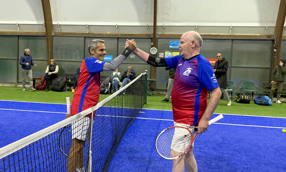 Siamo al Day6 del CAMPIONATO di CHIUSURA con un match da “dentro o fuori” con il team capitanato da Paolo VITALI che centra il risultato pieno eliminando di fatto il team di Paolo GRANATA, primo singolare combattuto con SIMONCELLI che ritrova il suo gioco e doma (6-4) la resistenza di BALDIRAGHI, nel secondo singolare al femminile si vedono le qualità di Donatella SCAVONE che batte (6-1) Enrica PASSONI, doppio finale molto complicato per TRIONI e SPEDICATO che devono cedere abbastanza nettamente (6-1) da VITALI e TAVERNA che conquistano un 3-0 che vale il momentaneo secondo posto nel girone in attesa dell’ultimo match.