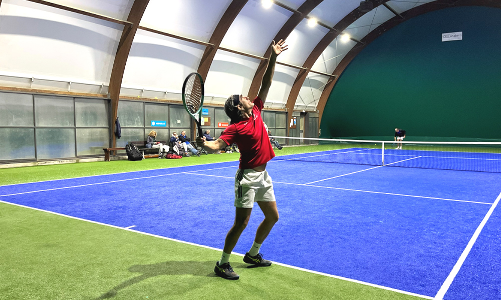 Primo singolare dove parte bene un Baldiraghi regolare e senza fronzoli che mette da subito in difficoltà un Simoncelli timido che non trova i suoi colpi, primo parziale di 3-1 per Baldiraghi che al turno di servizio successivo commette qualche errore di troppo e Simoncelli ne approfitta e con fatica risale fino al 3-3. Sembra ritrovare il suo gioco Mario ma l’avversario va ancora avanti per 4-3, sprint finale tutto per Simoncelli che trova ritmo e le sue giocate fatte di palle corte alternate a colpi di approccio difficili da replicare, prima 4-4 e poi il 6-4 in suo favore trovato alla conclusione di un match bello e combattuto.