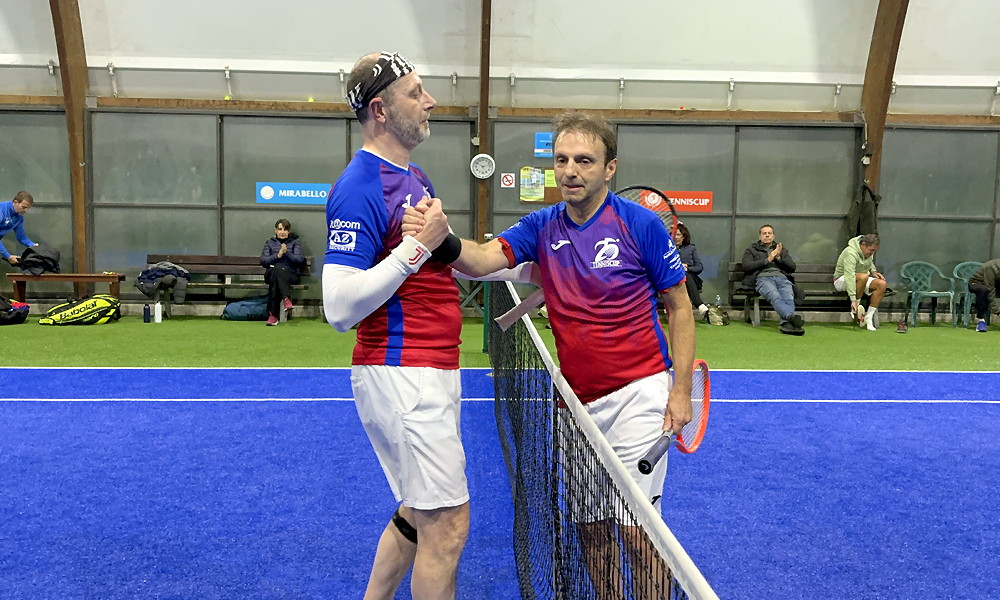Settima sorprendente serata del CAMPIONATO di CHIUSURA con un match conquistato in larga parte nei singolari dal team “Clay Gladiators” oggi guidato da Paolo GRANATA ma alla fine vinto con uno grande scatto finale dai “Matador” CALLEGARI e DE SANTIS che pareggiano (2-2) ma con una differenza game di +3, primo singolare con Enrica PASSONI che batte (6-4) una Laura POZZI più efficace nel finale di match, secondo singolare con CARNEVALI che bissa la vittoria in singolare con un (6-3) su VILLA, doppio dove CALLEGARI e DE SANTIS sono efficaci e perfetti e con un (6-2 6-2) battono GRANATA e PACCHIARINI conquistando la serata ma di fatto probabilmente eliminando entrambi i team dal torneo.