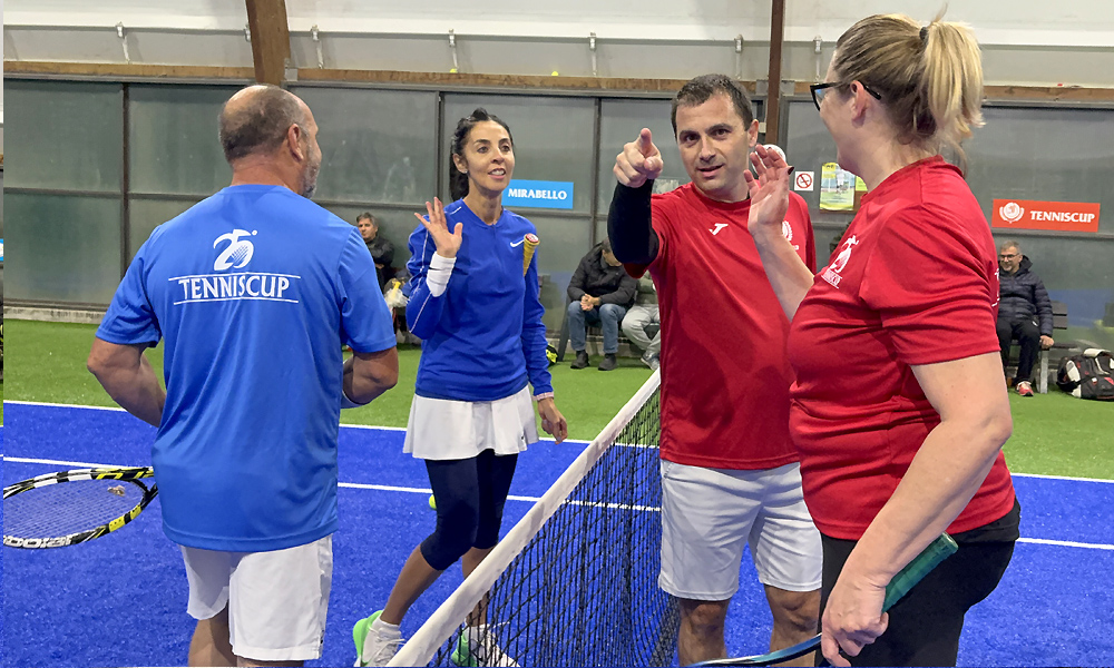 Voti per tutti : OMODEO (voto 9) ottimo match con qualche errore ma per fortuna degli avversari, è sempre nelle zone giuste del campo e trova comunque un ottima intesa con la compagna, Michela CAZZOLA (voto 8) debutto in tenniscup più che positivo dove dimostra la sua duttilità nella specialità sia a rete che nel turno di servizio MORELLO (voto 8) rimane nel match lottando su ogni palla e trovando una vittoria molto importante per il suo team dimostrando anche le sue capacità in singolare MARCHESI (voto 7,5) non cede facilmente e nonostante molto sotto con il passivo riesce quasi a rimontare contro un avversario complesso, direi una buona prova anche se non premiata con un successo, NIERI GERACI (voto 6,5) non parte bene e al servizio risulta spesso velleitario, non è la sua specialità e un pò si vede anche se riprende un paio di game diciamo che fatica ad entrare nel match in maniera decisa, Sabrina CODELUPPI (voto 6,5) cerca di dare un gioco agli scambi ma spesso non ci riesce per la pressione avversaria nel finale però prova qualche soluzione che a volte riesce nel complesso una prova fatta di alti e bassi sicuramente non facile da gestire, MASCHERPA (voto 8,5) è l’uomo decisivo che strappa un punto importante per proseguire il torneo, lotta nel finale dopo aver dominato per lunghi tratti il match e riesce di (grande) esperienza a portalo a casa, CAPPELLETTI (voto 7) riesce ad essere concreto solo a sprazzi ma il punteggio poteva essere peggiore, risulta a tratti troppo falloso e poco concreto ma alla fine disputa, per l’andamento del match, una buona prova di resistenza perchè cerca di impegnare l’avversario fino all’ultimo.