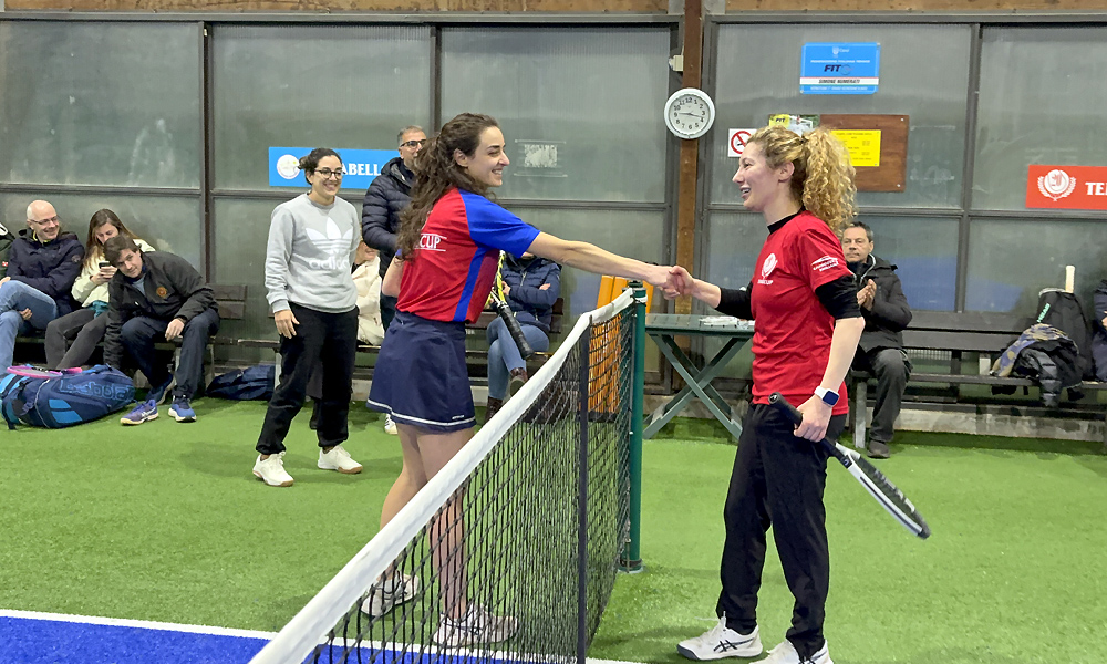 Doppio finale decisivo con Erica Gelsomino e Angelo Marchesi che partono benissimo, un Gardella non subito nel match e un Giacometti che cerca di forzare troppo i tempi di gioco mandano gli avversari sul 4-0 in loro favore grazie anche ad un killer point, parziale da brividi che in qualche modo si aggiusta per 1-4 ma la combinazione di Gelsomino e Marchesi funziona bene sia a rete sia nei cambi di ruoli durante lo scambio, con Gelsomino che mette sempre a frutto le sue incursioni a rete e Marchesi impeccabile “macinatore” di scambi da fondocampo. Si riprende Gardella con Giacometti che invece cala un pò nei pressi della rete, troppi errori dettati dall’ansia del risultato e dall’inseguire il punteggio, si arriva 5-2 con ancora un killer point “malandrino“, ultimo servizio di Marchesi che non perdona gli errori in risposta di Gardella e Giacometti per un 6-2 che consegna la serata a Erica Gelsomino e al suo team per 3-2.