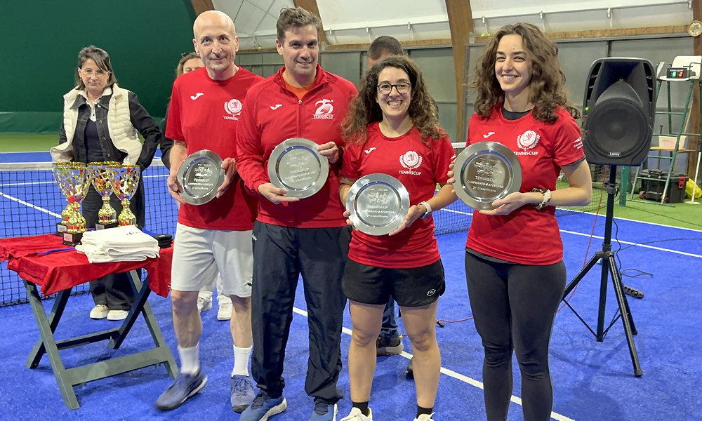 La finale del CAMPIONATO di APERTURA non delude le aspettative dando vita ad uno dei match più incerti ed esaltanti degli ultimi anni di campionato, alla fine senza incertezze la spunta nel doppio il Team BORG di Paolo VITALI che conquista il titolo meritatamente per quanto espresso in tutto l’arco del torneo, primo singolare quasi a senso unico con una fantastica Flavia LEGNANI che travolge (6-2) Donatella SCAVONE, poi succede di tutto con GRIFFINI che pareggia il conto battendo (5-5 7-5) allo short tiebreak PACCHIARINI, singolare tra i due capitani spettacolare e molto ben giocato con Erica GELSOMINO che fa suo il match (5-5 2-0) con un altro tiebreak su Paolo VITALI, si va al doppio con VITALI e REBECCHI che vincono non senza problemi (6-2) su Erica GELSOMINO e MARCHESI conquistando il campionato dopo una serata “adrenalinica” giocata con grande spirito di squadra e con un alto livello di tennis da tutti i player.